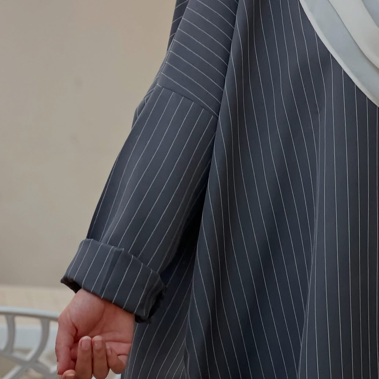 Crafted from premium striped Routina fabric, this oversized shirt dress offers both comfort and sophistication. Designed with side pockets for a practical touch, it’s the perfect everyday piece you can style for any occasion.